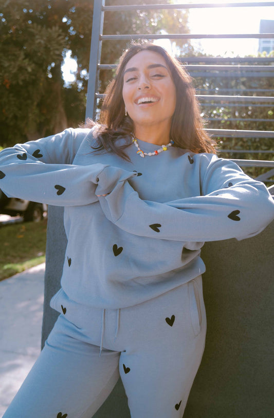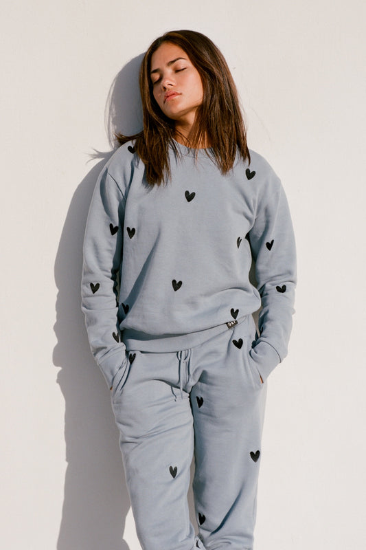 O&F Heart Embroidered Sweatshirt - Blue/Grey