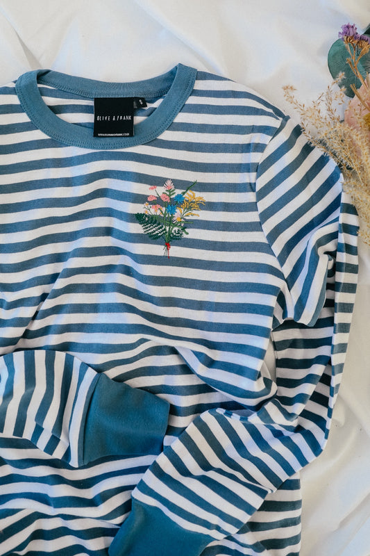 O&F Heart Embroidered Breton - Navy/Dusty Pink