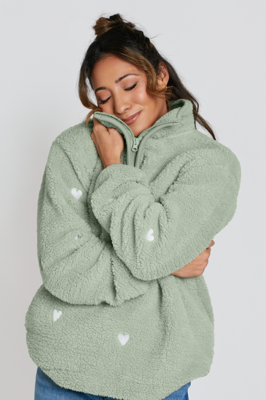 O&F Sage Heart Embroidered Borg Fleece