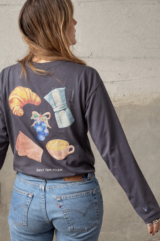 O&F Coffee and Croissant Long Sleeve Breton Tee