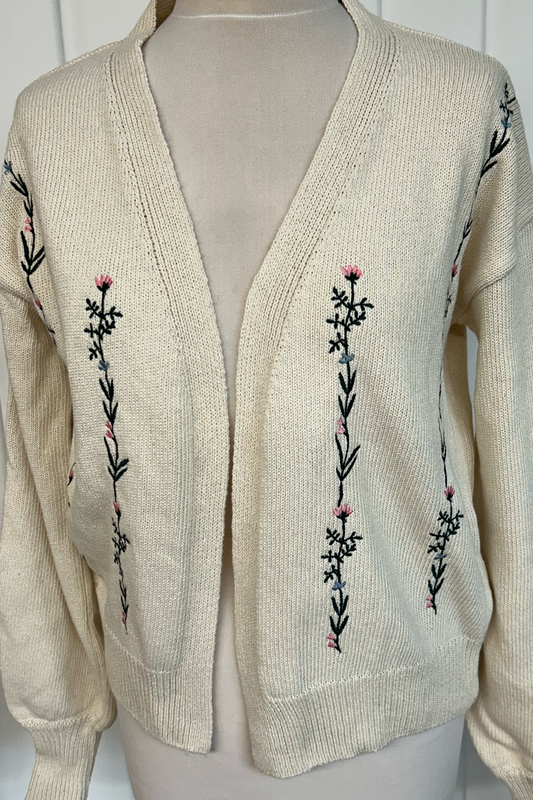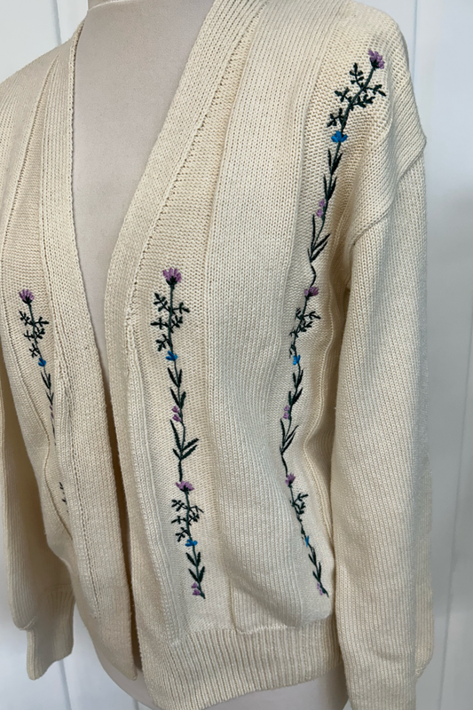 Sample: Floral Embroidered Cardigan - Blue and Lilac- Small
