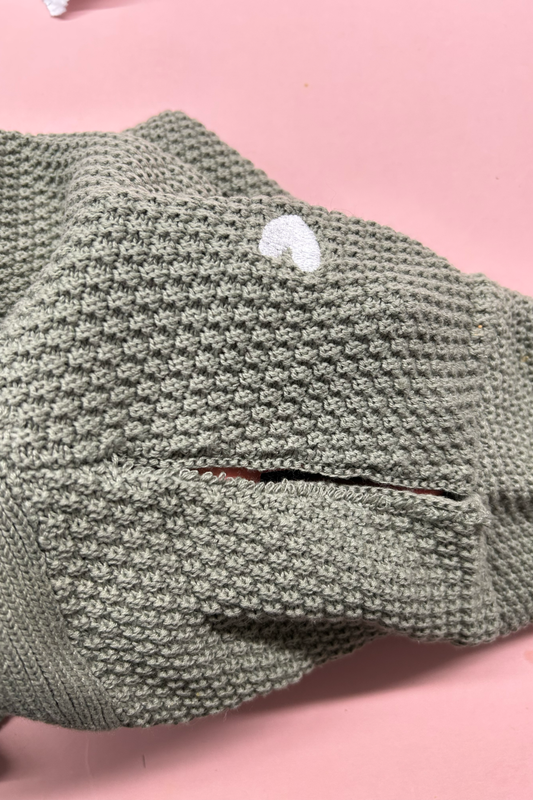 Faulty: Heart Embroidered Cardigan - Sage - Medium - Split at Seam