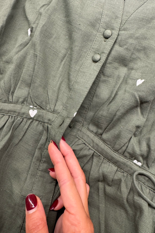 Sample: Pamela Heart Embroidered Dress - Large - Missing Button
