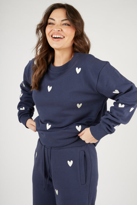 O&F Heart Embroidered Sweatshirt - Blue/Grey