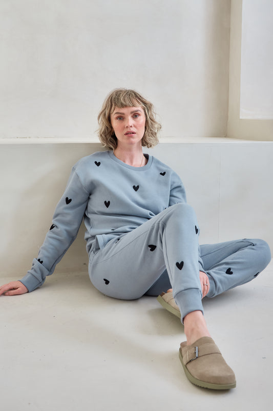 O&F Heart Embroidered Joggers - Blue/Grey
