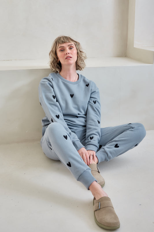 O&F Heart Embroidered Joggers - Blue/Grey