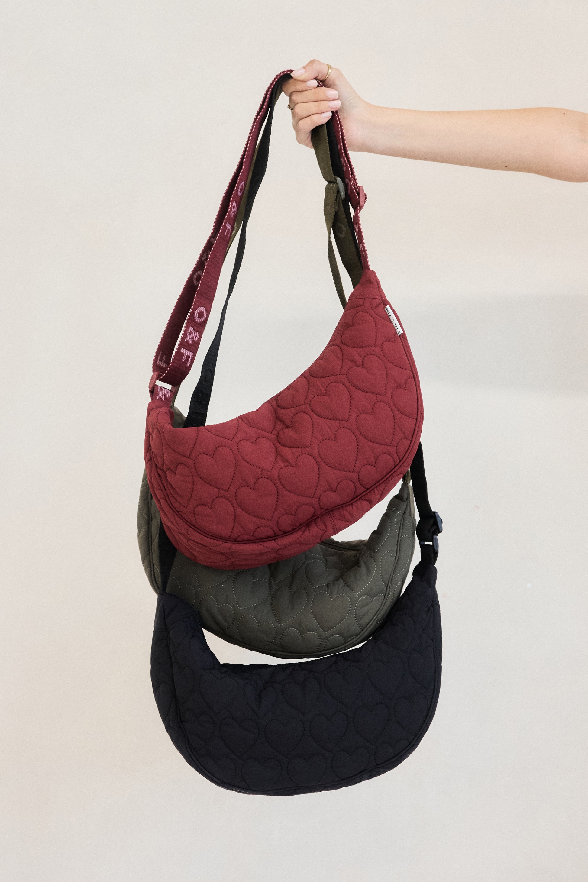Elevate your everyday style with our heart quilted cross body bag. Designed and created with love in every detail, it features heart-shaped quilting, a fully adjustable O&F strap and custom logo tab.