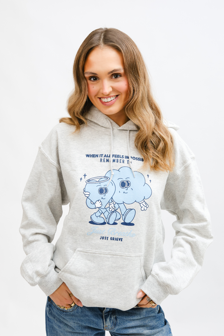 This hoodie has been created in collaboration with Just Grieve, a community founded by Misha Grimes to support those navigating one of life’s toughest challenges, grief.