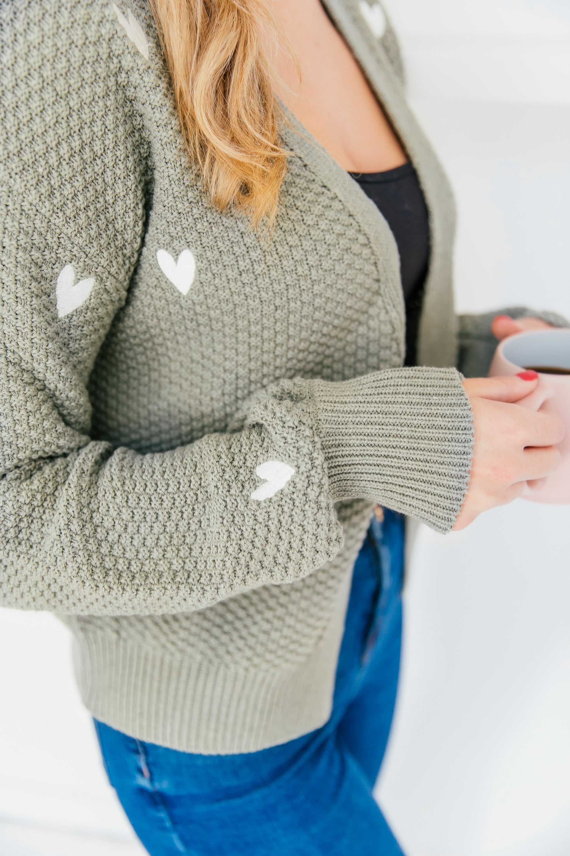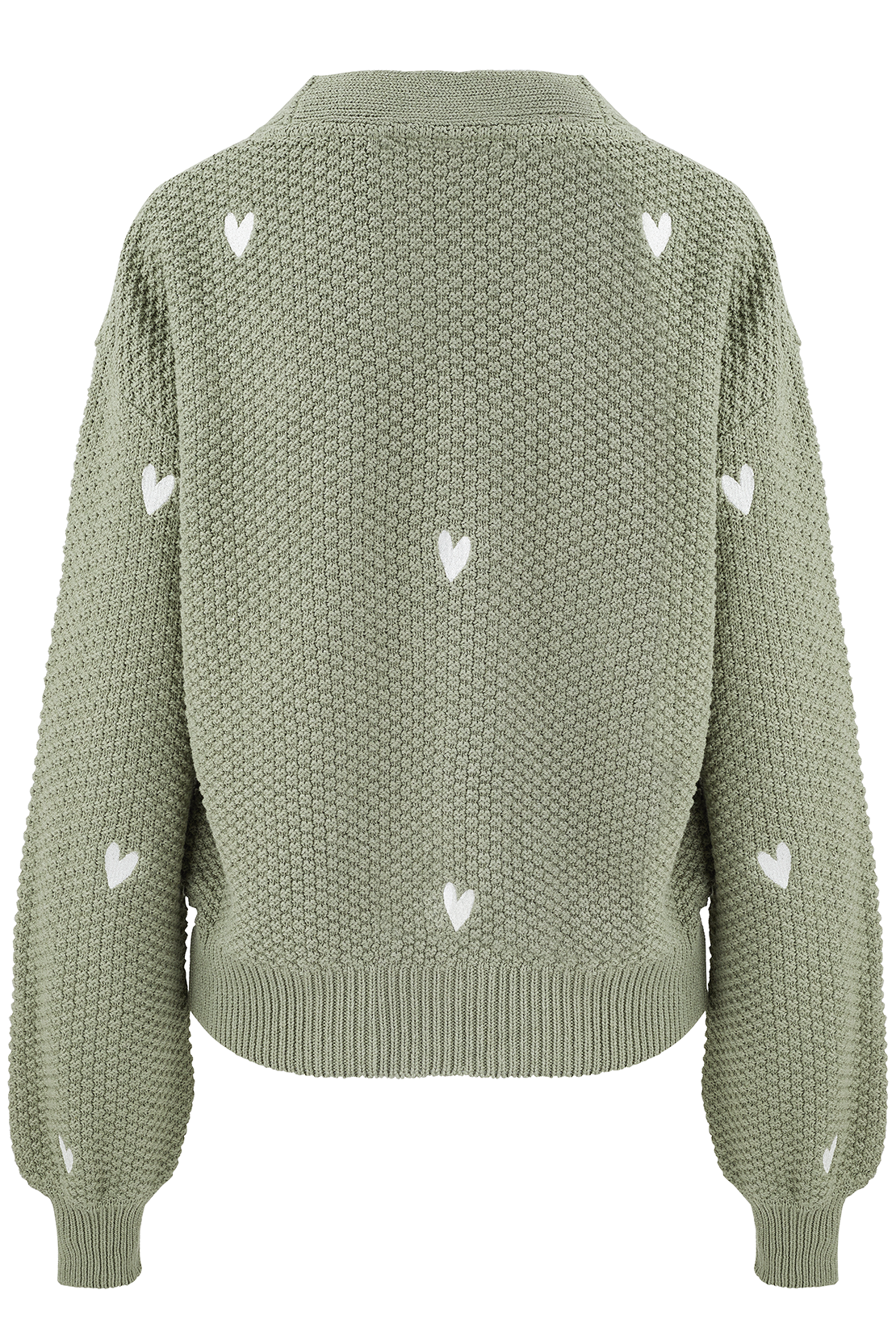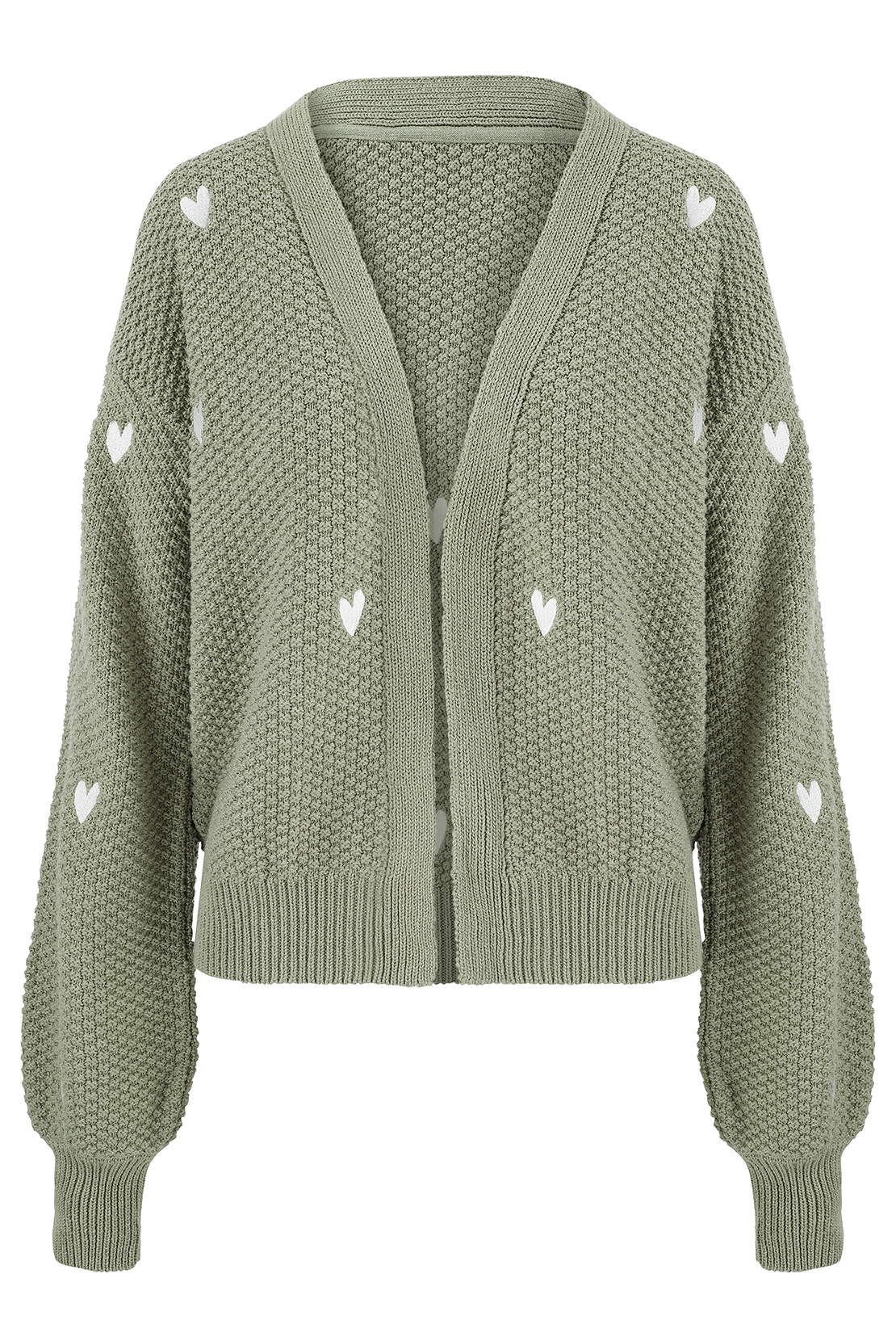 O&F Heart Embroidered Cardigan - Sage