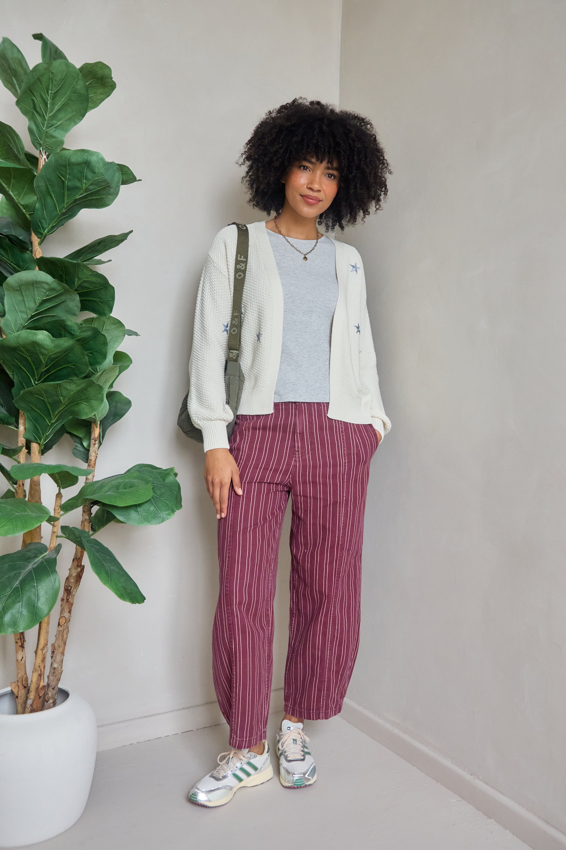 Colour: Cream cardigan with grey star embroidery and grey rouleau 'love' design.